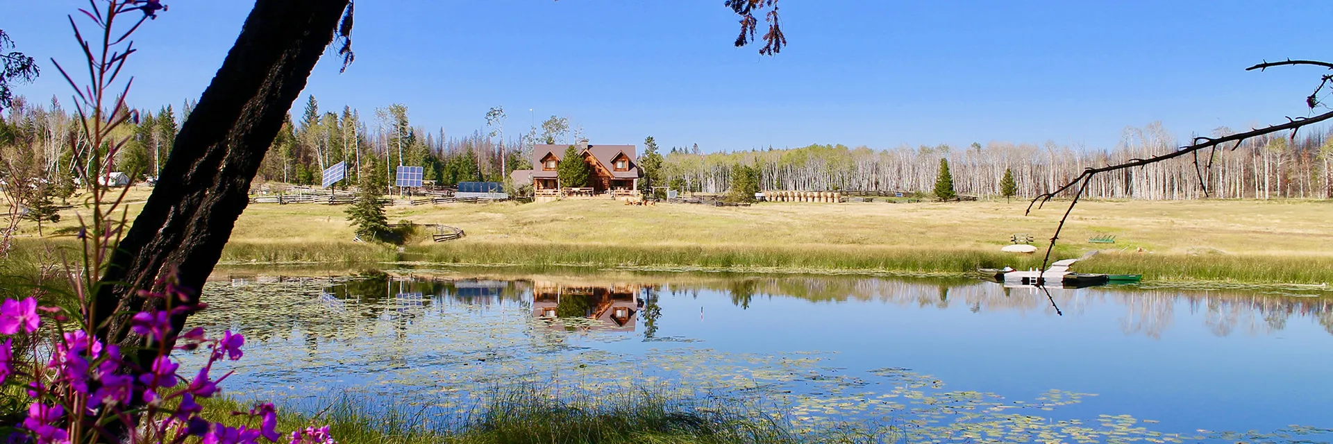 The main Ranch House at Siwash Lake Wilderness Resort is a classic Canadian luxury lodge — hand-hewn with spruce logs from the nearby forest. It is centrally located on the ranch portion of the property and is the hub of the resort. Lodge guest accommodations are located on the top floor with beautiful lake and pasture vistas.