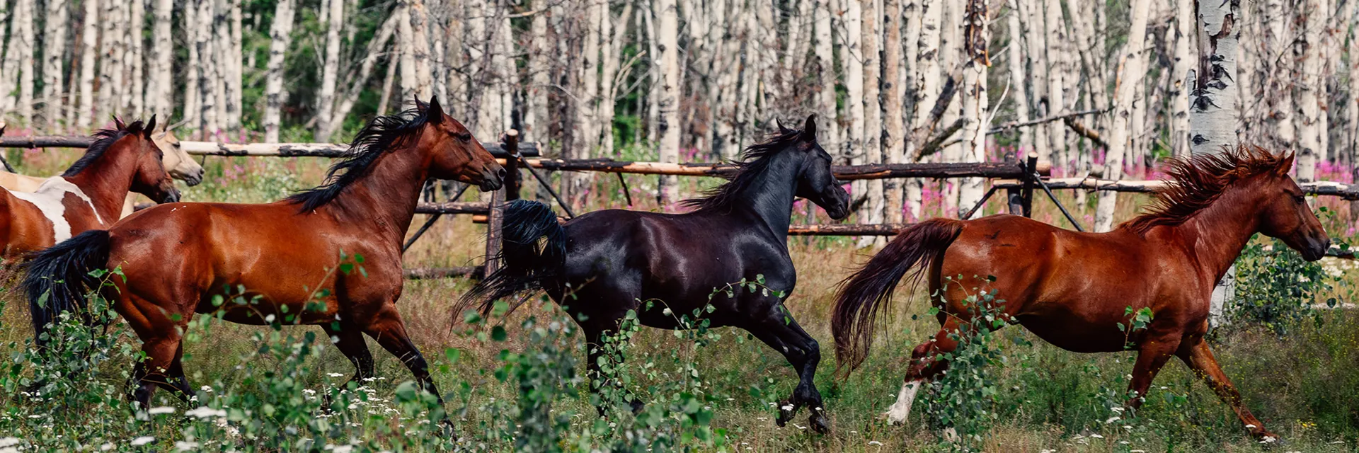 Siwash Lake owns and cares for its own herd of horses. Horses are not leased, rented seasonally, or contracted from third-party providers. The herd lives naturally as a group, roaming large pastures and spending significant time at liberty. This approach supports physical soundness, mental well-being, and strong social bonds, and allows for consistent training and high welfare standards.
